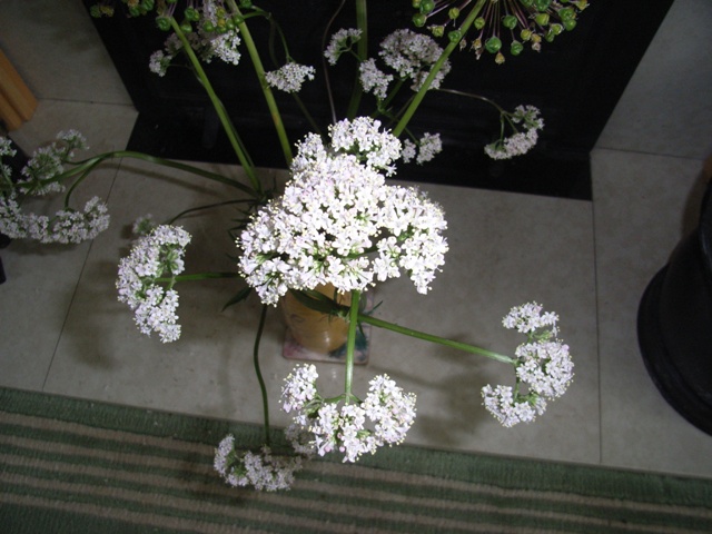 Last year I bought a valerian (Valeriana officinalis) and I suppose it is a bit disappointing looking, its early flowers are whitish but it becomes tall and straggly. However, the flowers smell so sweet. I have cut some for the house and they are lasting very well.